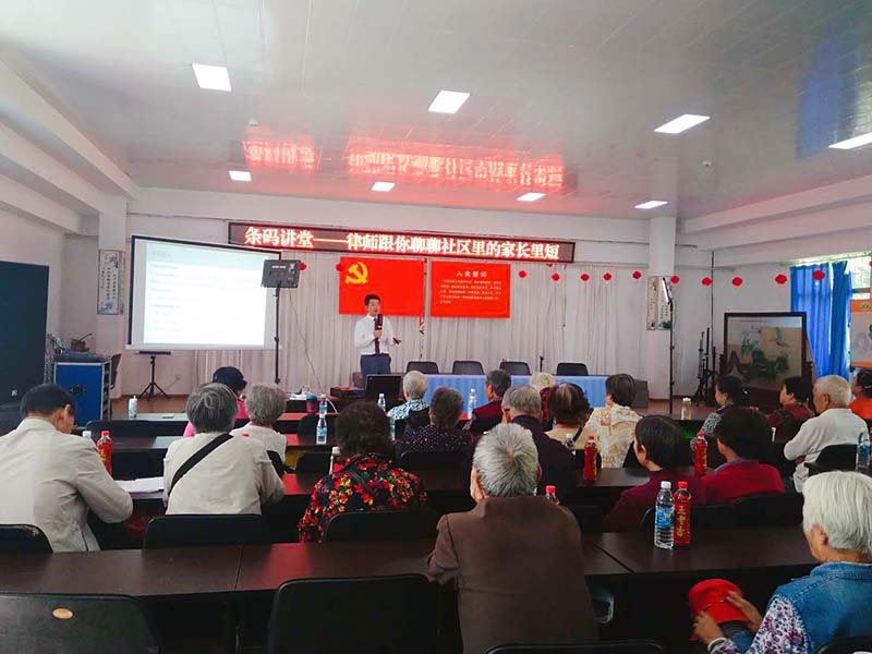 黄雯律师就广场舞、养宠物、赡养、老年人再婚、就业、购买保健品等与老年人日常生活息息相关的问题给出专业的律法意见。黄雯律师以简单直白、通俗易懂的话语,以生动有趣的故事给社区的叔叔阿姨们送上了他们最需要的法律知识。让社区的叔叔阿姨们了解到哪些事情是法律不允许的,哪些法律保护着老年人的合法权益,当自身的合法权益受到侵害时,应该怎么办......