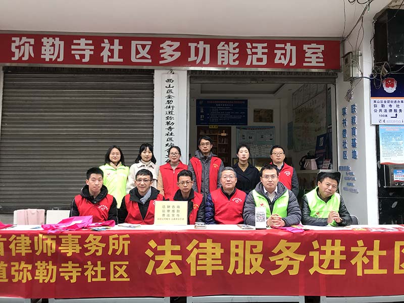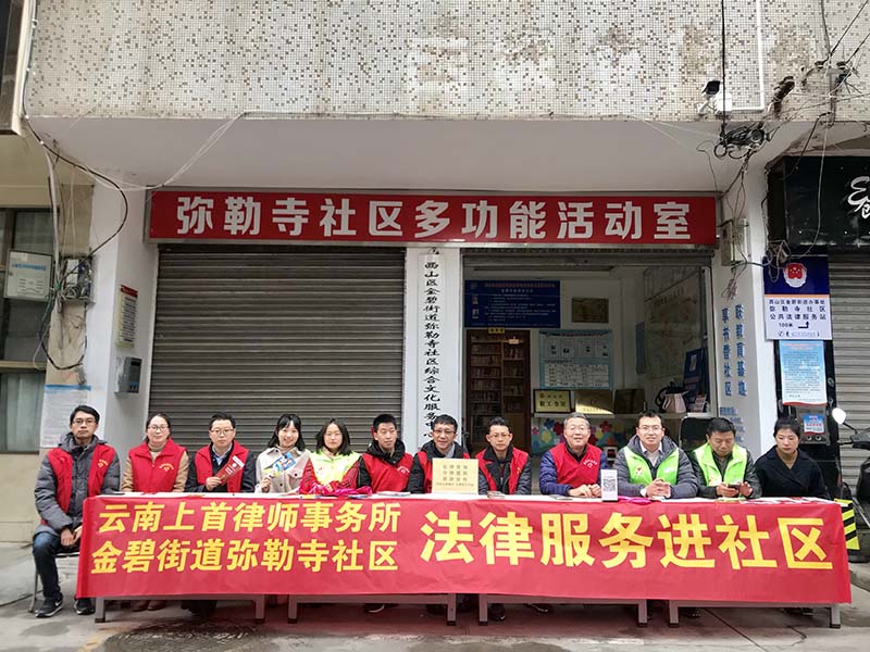 明日客程还几许,沾衣况是新寒雨。12月4日,国家宪法日前夕,云南上首律师事务所的志愿者律师们冒着初冬的风寒,一早就到西山区金碧街道弥勒寺社区开展志愿者活动,为该区居民送上法律服务。