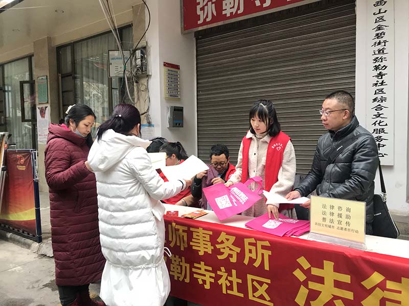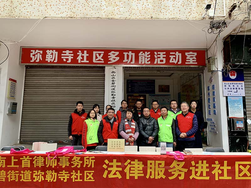 建设法治和谐西山,法律志愿者服务先行。共建法治和谐社会,离不开每一份力量,云南上首律师事务所及上首律师们积极参与志愿者进社区等公益活动,力所能及的为建设和谐法治社会贡献自己的一份力量。