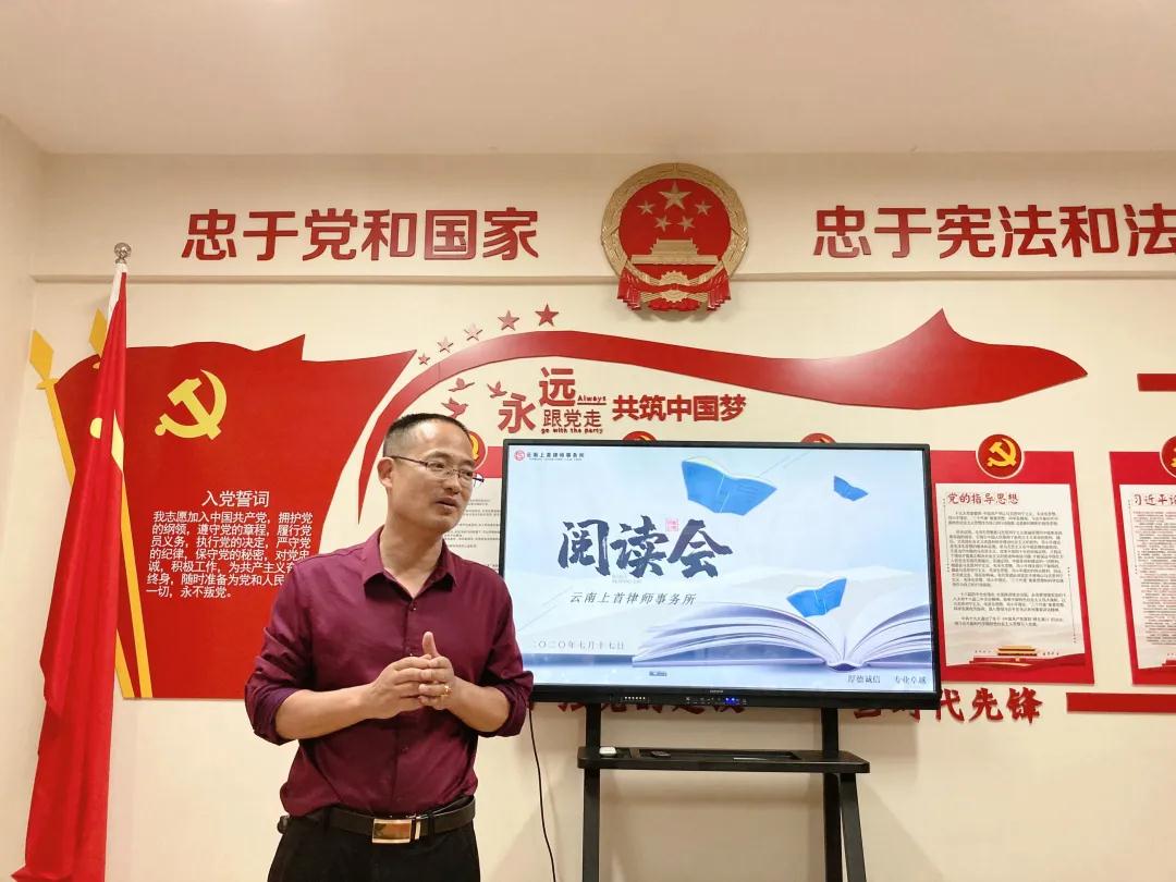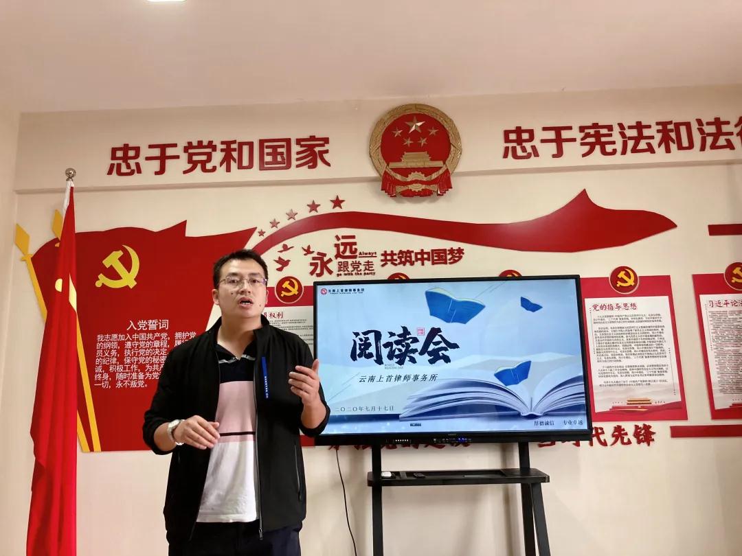 2020年7月17日下午,云南上首律师事务所在会议室举行了读书会,读书会初衷是丰富律师阅读、促进知识交流,同时锻炼律师特别是青年律师的表达能力,让各位律师在阅读中收获快乐,在交流中精进。