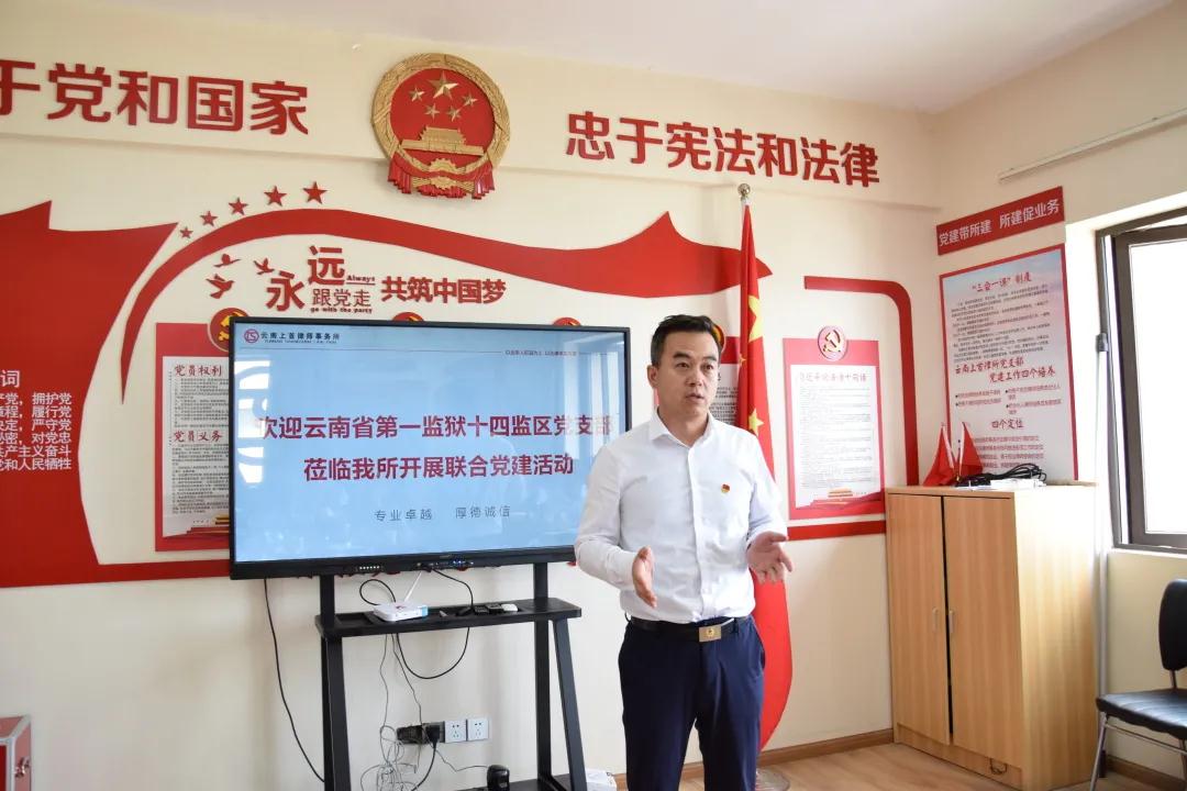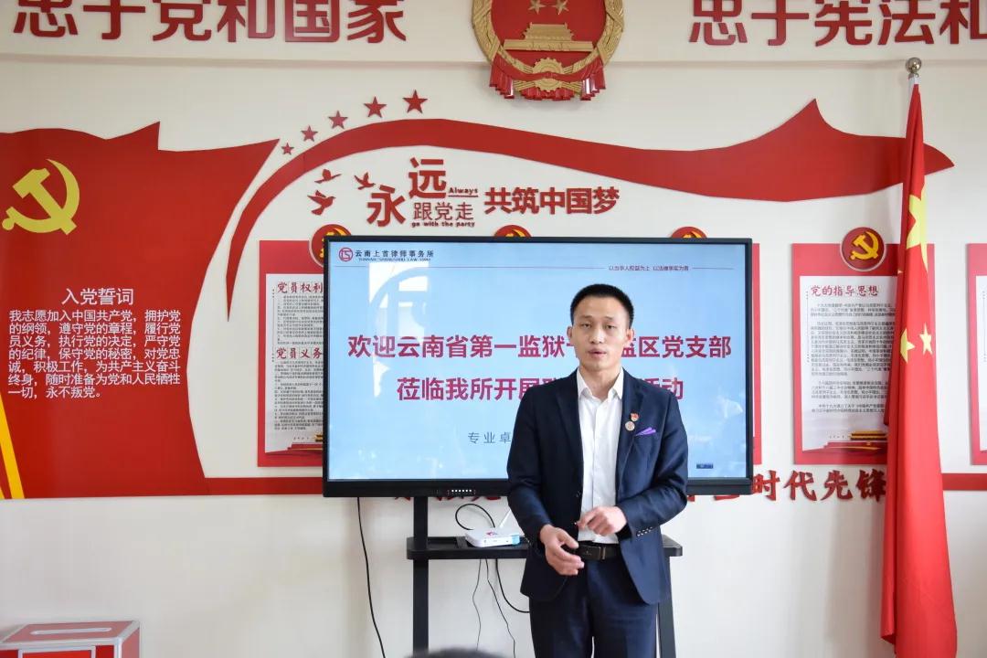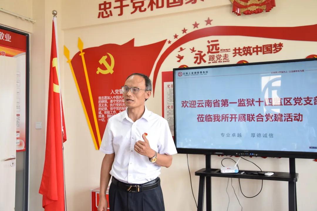 近日,云南省第一监狱十四监区党支部与我所党支部联合开展党建活动,一共进行了四项议程。我所党支部书记杜开周律师对省一监十四监区党支部党员同志的到来表示了热烈的欢迎。