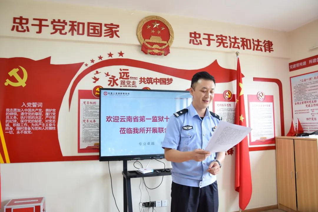 紧接着,云南省一监十四监区党支部与云南上首律师事务所党支部的党员同志在青年党员律师葛世宽的带领下,一起重温了入党誓词。