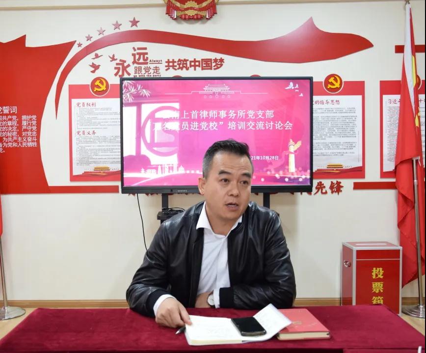 根据西山区律师行业党委2021年度“万名党员进党校”培训活动统一部署,2021年10月28日,云南上首律师事务所支部组织集中开展培训交流讨论会。