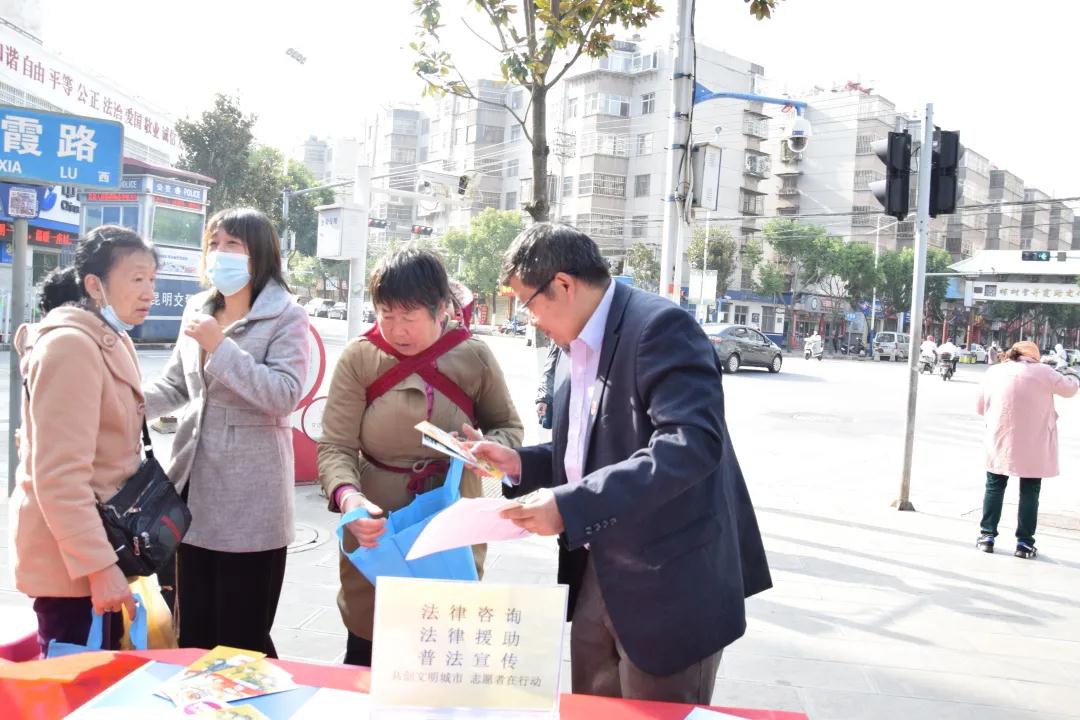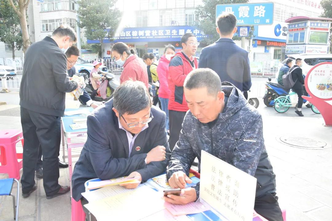 志愿者律师在法治小广场摆设服务咨询点,提供免费法律咨询服务,为有需要的居民提供专业、切实有效的法律解答。在解答完相关问题后,律师们也不忘“反诈骗 戴头盔”相关内容的普及宣传。