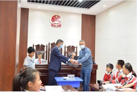 了解到东川四小在“模拟法庭”中道具服饰欠缺,为达到更好“庭审”效果的同时深化促进普法教育效果,在“开庭”前,