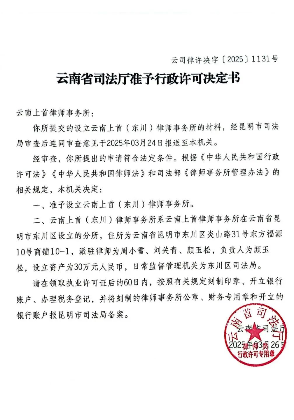 扎根红土高原 谱写法治新篇 | 云南上首(东川)律师事务所正式获批设立!