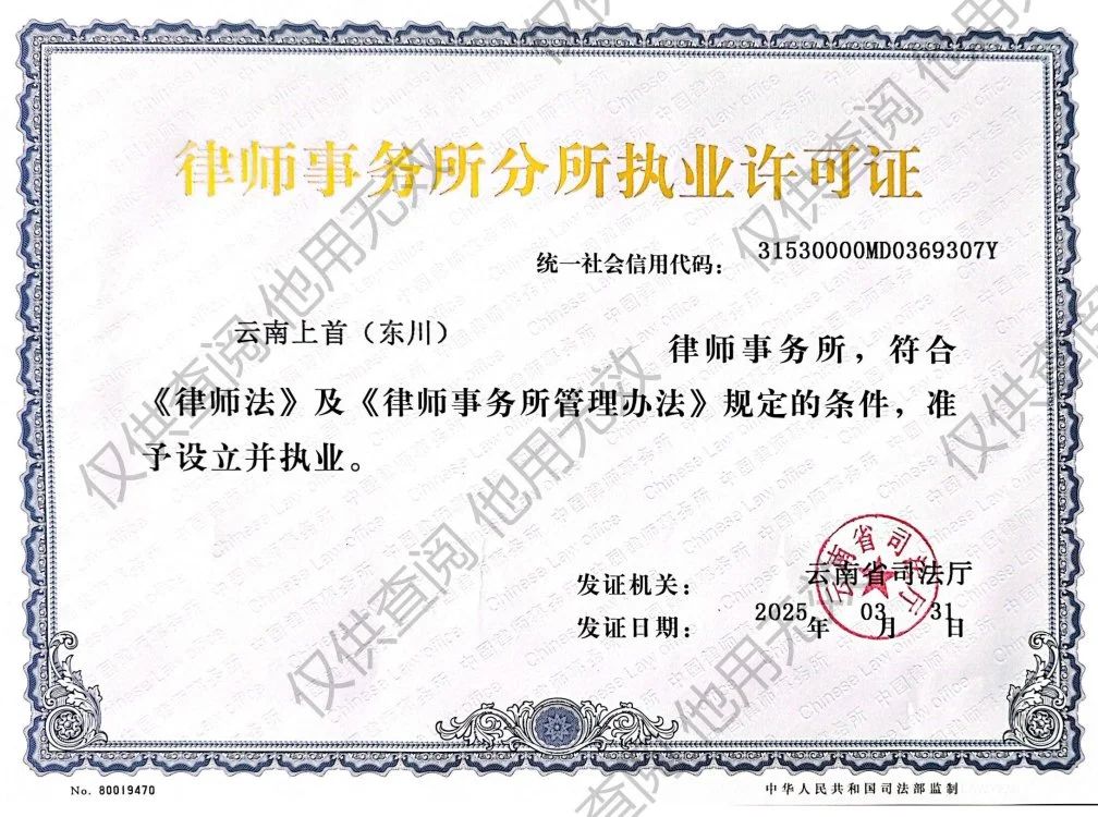 2025年3月26日,经云南省司法厅审批,准予云南上首(东川)律师事务所设立,颜玉松律师为分所负责人。东川分所的成立标志着云南上首律师事务所“立足云南、辐射区域”的战略布局再添新篇。新分所坐落于昆明市东川区炎山路31号,将以专业、高效的法律服务,助力东川及周边地区的法治建设与经济社会发展。
