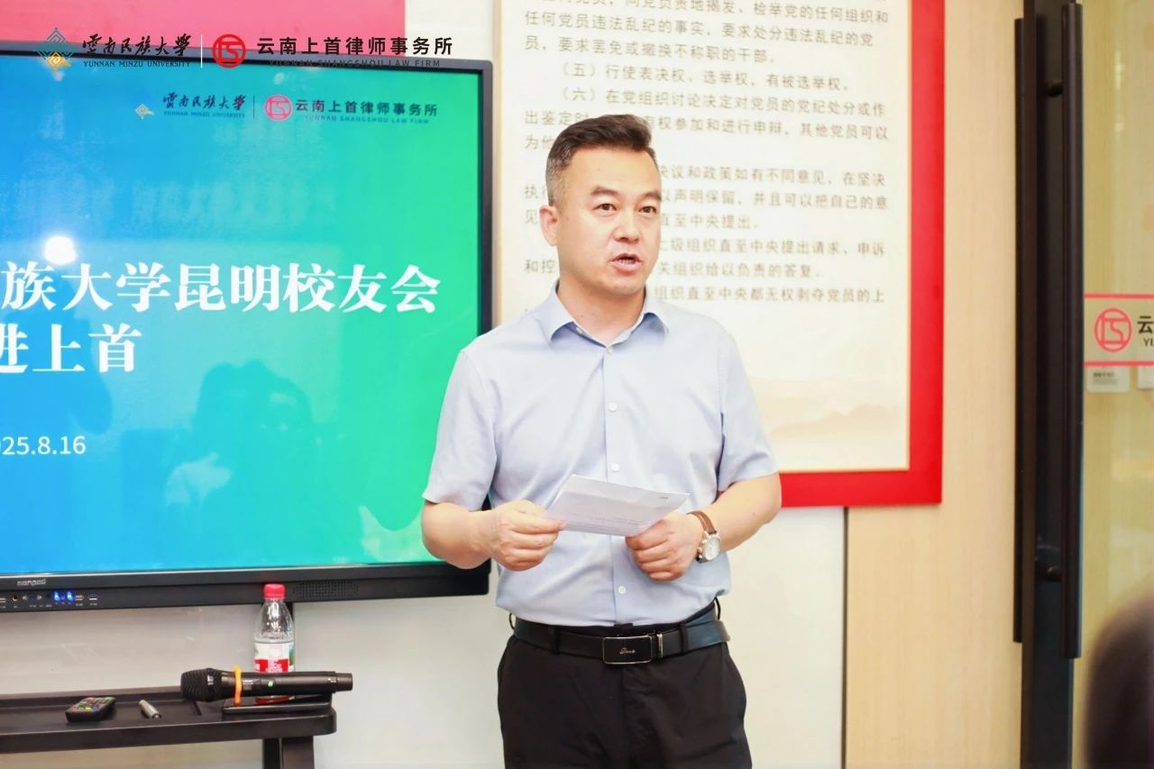 2025年8月16日,云南上首律师事务所在昆明市人民西路保利中心17楼成功举办了云南民族大学昆明校友会校企走访暨主题沙龙活动。本次活动以“从梦想花开到资本江湖——校友企业需躲开的法律‘暗礁’”为主题,吸引了众多嘉宾和校友企业家人士的参与。